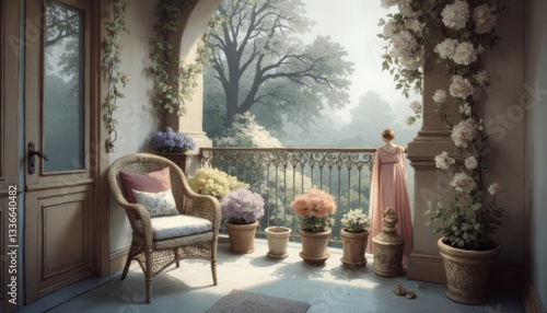 © yh, Obraz premium Quiet time on the balcony