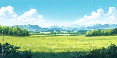 © Afif, Obraz premium Quiet valley with green fields and forest shadows