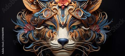 © El, Fototapeta premium quilling paper mask liger, ai generative