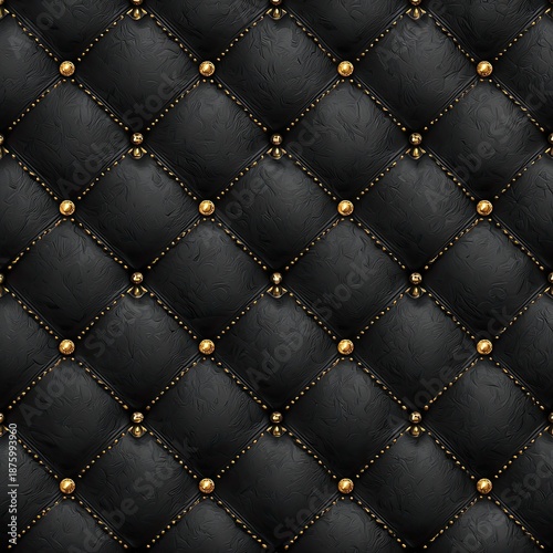 © Pen, Fototapeta premium Quilted black leather pattern with golden studs in diamond arrangement, vintage style