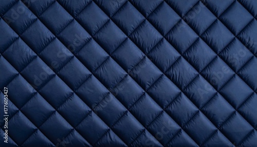 Naklejka premium Quilted navy fabric diagonal texture, featuring soft padding, geometric...
