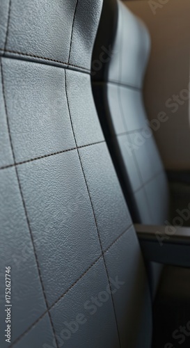 © Ariestia, Obraz premium Quilted synthetic upholstery on a modern seat surface creates a textured detail.