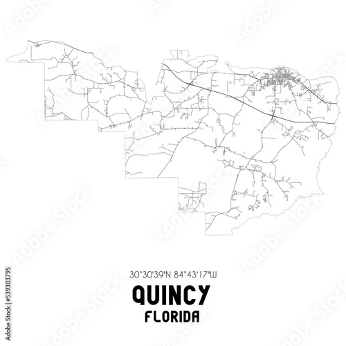 Obraz premium Quincy Florida. US street map with black and white lines.