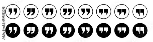 Fototapeta premium Quotation marks round icon buttons set black and white vector collection on transparent background