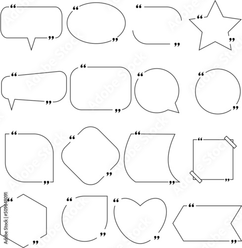 © Knox, Fototapeta premium Quote box frame big set for colorful design of speech quotation marks. Templates of texting black line quote frames for definition, remark, and citation design ,Vector illustration. Writing box
