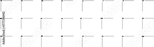 Naklejka premium Quote box frame icon set. Monochrome simple horizontal frame. Quotes. Quotation marks. Comment, text box. Speech bubbles with quotation marks. Blank text message box for quotes. Blog post template.
