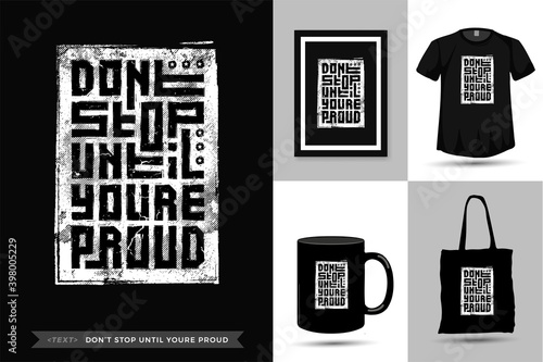 © VISIT INDONESIA STD., Naklejka premium Quote Tshirt Don't Stop Until You are Proud. trendy typography lettering vertical design template for print t shirt fashion clothing poster, tote bag, mug and merchandise