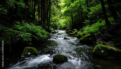 © Aromas, Fototapeta premium Río de aguas oscuras que fluye a través de un exuberante bosque verde