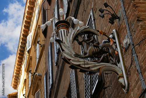 © Richard Villalon, Fototapeta premium Réverbère typique de la vieille ville de Sienne