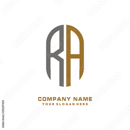 Obraz premium RA minimalist letters, with black and gold, white, black background logos