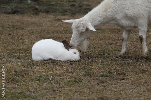 © Pretti, Fototapeta premium Rabbit and white goat on the street