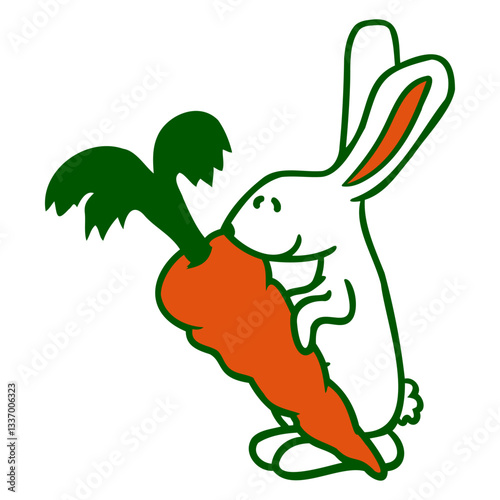 Fototapeta premium Rabbit Carrot Carrot Eat Huge Big Hunger Delicious Design Lover Art Vector Illustration Card T-Shirt Poster Sticker Graphic Print Decorative Drawing Isolated Logo Decoration Symbol Creative Cool Style
