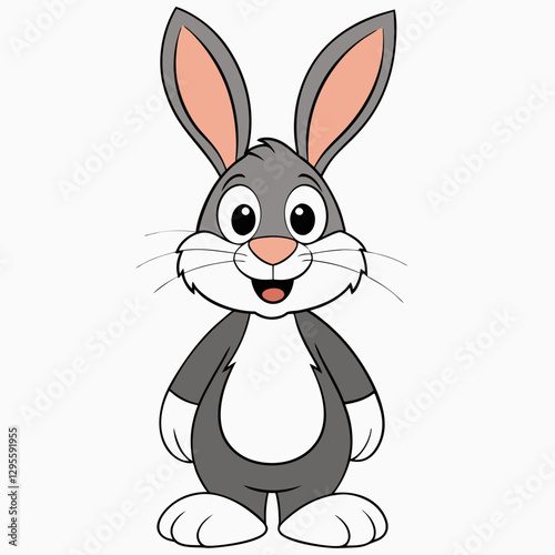 Fototapeta premium Rabbit cartoon character smiling on a plain background