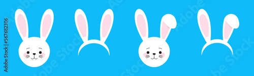 Fototapeta premium Rabbit easter flat poster on white background. Easter bunny cute and ears mask for banner design. Vector illustration.