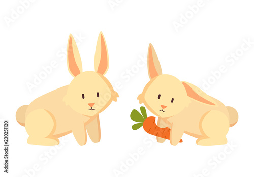 © robu_s, Fototapeta premium Rabbit Eating Carrots Closeup Vector Illustration