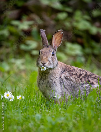 Fototapeta premium Rabbit eating flower in his habitat natural