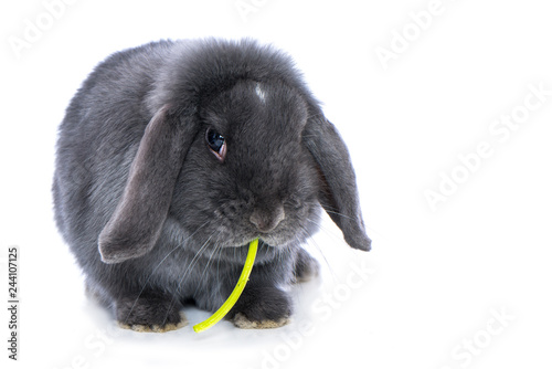© DoraZett, Fototapeta premium Rabbit eats a leaf
