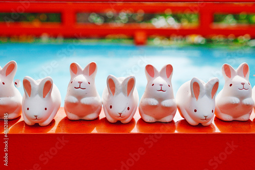 © Manuela, Obraz premium 京都 岡﨑神社のうさぎおみくじ Rabbit fortune at Okazaki Shrine in Kyoto, Japan