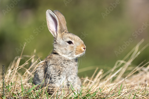 Fototapeta premium Rabbit hare while looking at you on grass