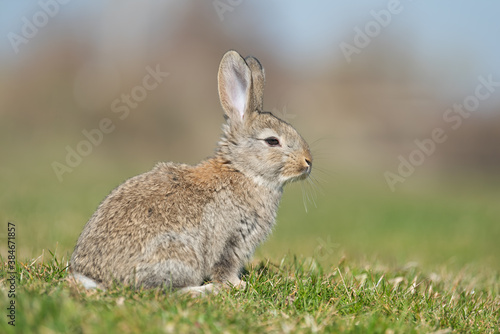 © Pavlo Burdyak, Fototapeta premium Rabbit hare while looking at you on grass
