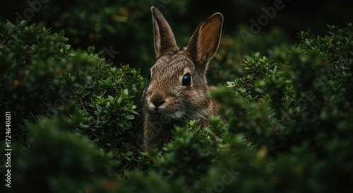 Fototapeta premium Rabbit hidden in lush foliage