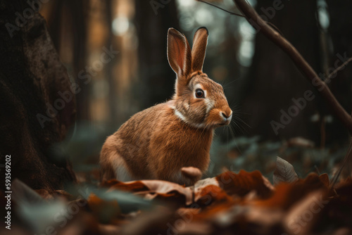 Fototapeta premium Rabbit in a forest. Generative AI
