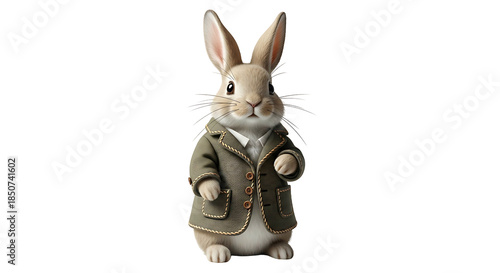 © Belajar, Obraz premium Rabbit in a jacket standing upright looking forward.