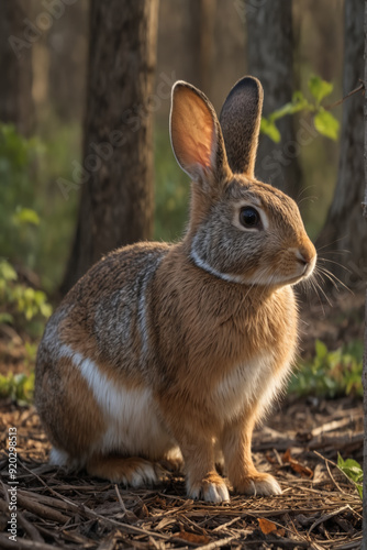 © DavidMohn, Fototapeta premium Rabbit in a Sunlit Forest