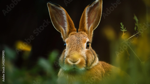 © Bertil, Obraz premium Rabbit in Grass created with Generative AI