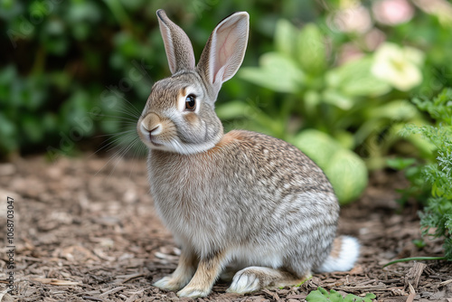 Fototapeta premium Rabbit is sitting on the ground