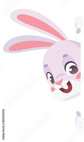 © ssstocker, Obraz premium Rabbit looking behind frame. Easter card template
