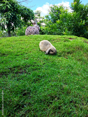 © Tawatchai, Obraz premium Rabbit on field and beautiful background.