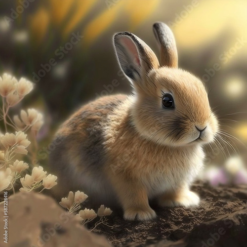 © REBEKASULTANA, Fototapeta premium rabbit on green nature