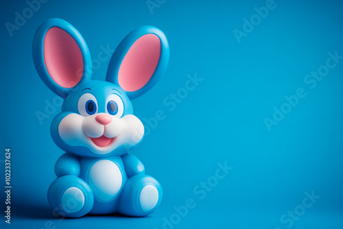 © MrGraphics1990, Obraz premium rabbit rubber toy with copy space background