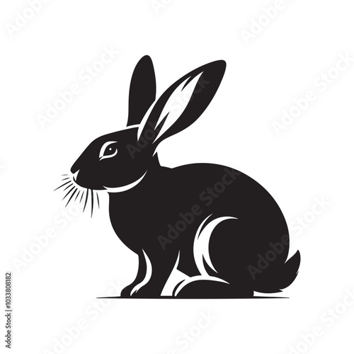 Obraz premium Rabbit Silhouette in Shadow on White Background Art.