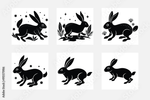 Fototapeta premium Rabbit silhouette minimal design set on white background for wall art