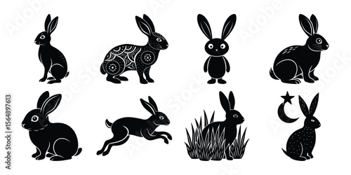 Naklejka premium "Rabbit Silhouette Vector Bundle | 8 Unique Bunny Poses and Styles"