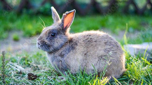 Fototapeta premium Rabbit sits on the grass in the sunlight