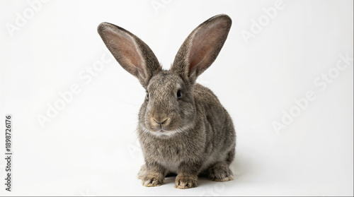 © Fotkrat, Obraz premium Rabbit sits on white surface in indoor setting under bright light