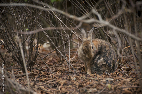 Fototapeta premium Rabbit sitting under branches of bush