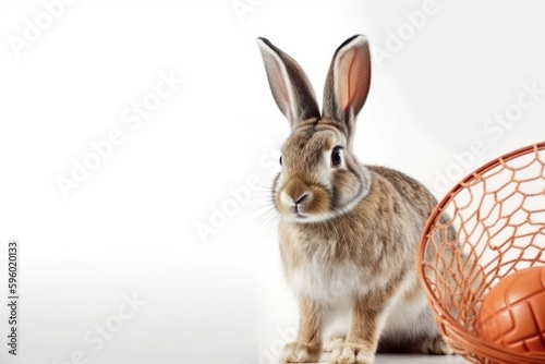 © Johnathan, Fototapeta premium Rabbit Slam Dunk Star Playing Basketball With Copyspace Generative AI