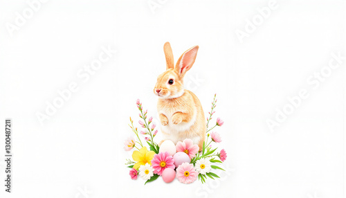 Obraz premium Rabbit surrounded by colorful flowers and Easter eggs