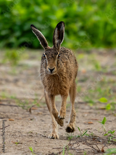 Fototapeta premium rabbit szarak zając język oczy biegnie
