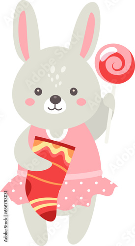 © Mykola Syvak, Obraz premium Rabbit With Christmas Stocking