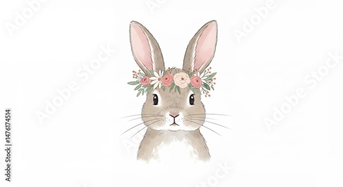© SRI, Fototapeta premium Rabbit with flower crown illustration