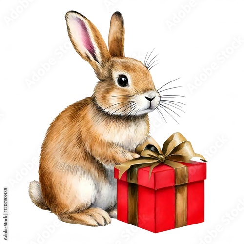 © Jane Rain, Obraz premium Rabbit with red gift box isolated on white background