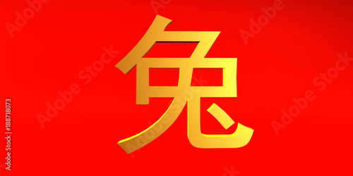 Obraz premium Rabbit Zodiac Sign Chinese in Gold and Red