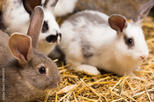 © Sergii Mostovyi, Obraz premium rabbits at the cage
