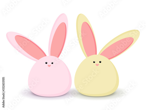 Obraz premium Rabbits icon. Sweet pink and yellow easter bunnys sitting waiting for Easter....