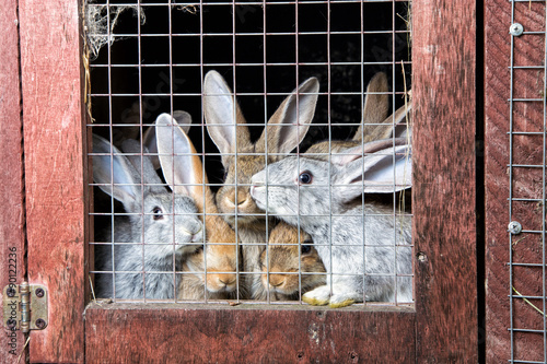 Fototapeta premium Rabbits in a hutch